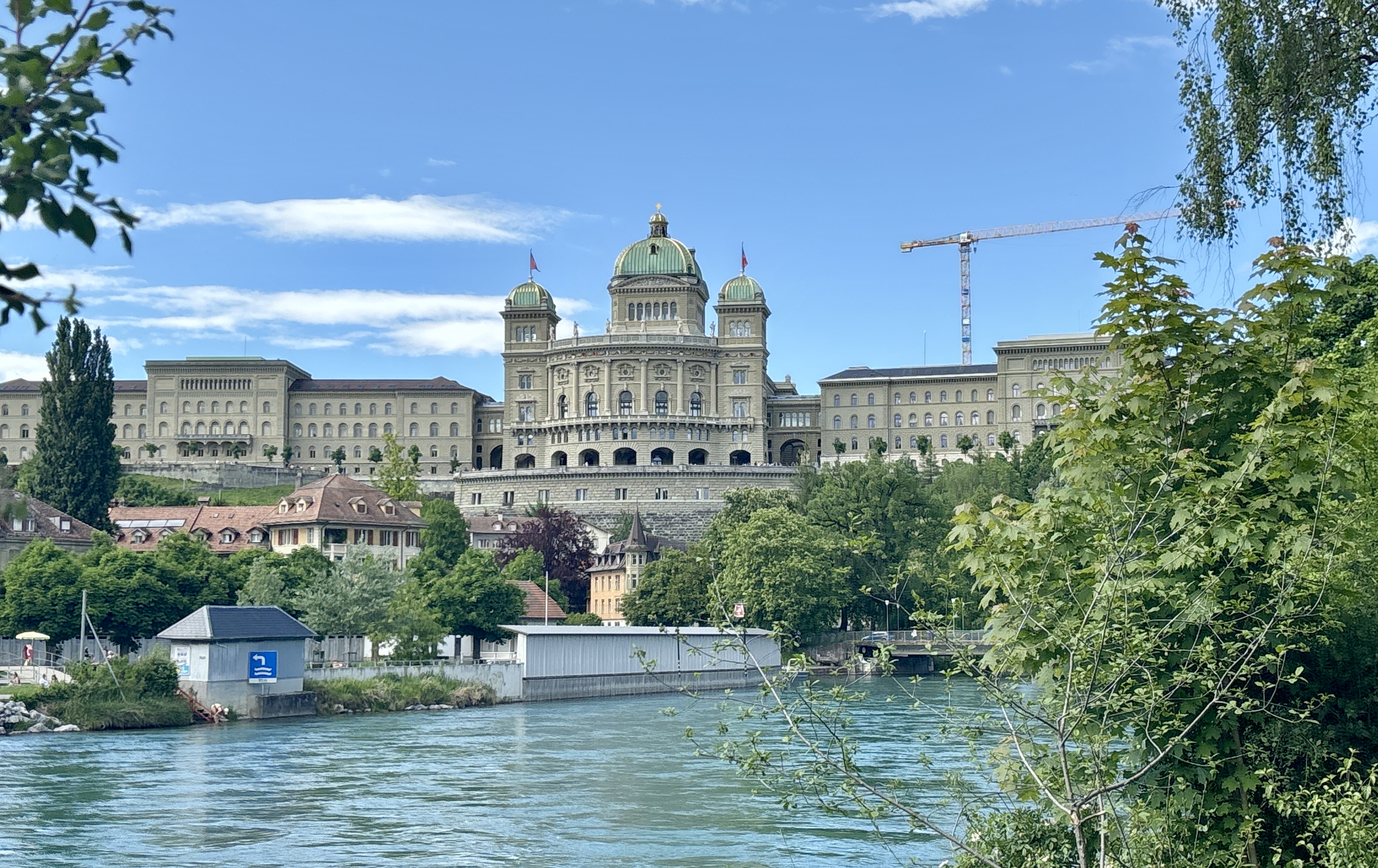 La journée au bord de l’Aar. Des intrépides se baignent et se laissent glisser sur le courant violent de la rivière. C’est sous l’imposante coupole du palais fédéral que siège le parlement helvétique. En bon marcheur et vrai baroudeur à vélo, Didier nous fait découvrir la ville et ses coins secrets.Ce fût une belle journée que nous avons terminé au pied de la tour de l’Horloge « zytglogge » disent-ils ici. C’est une Horloge astronomique animée datant du xvie siècle.