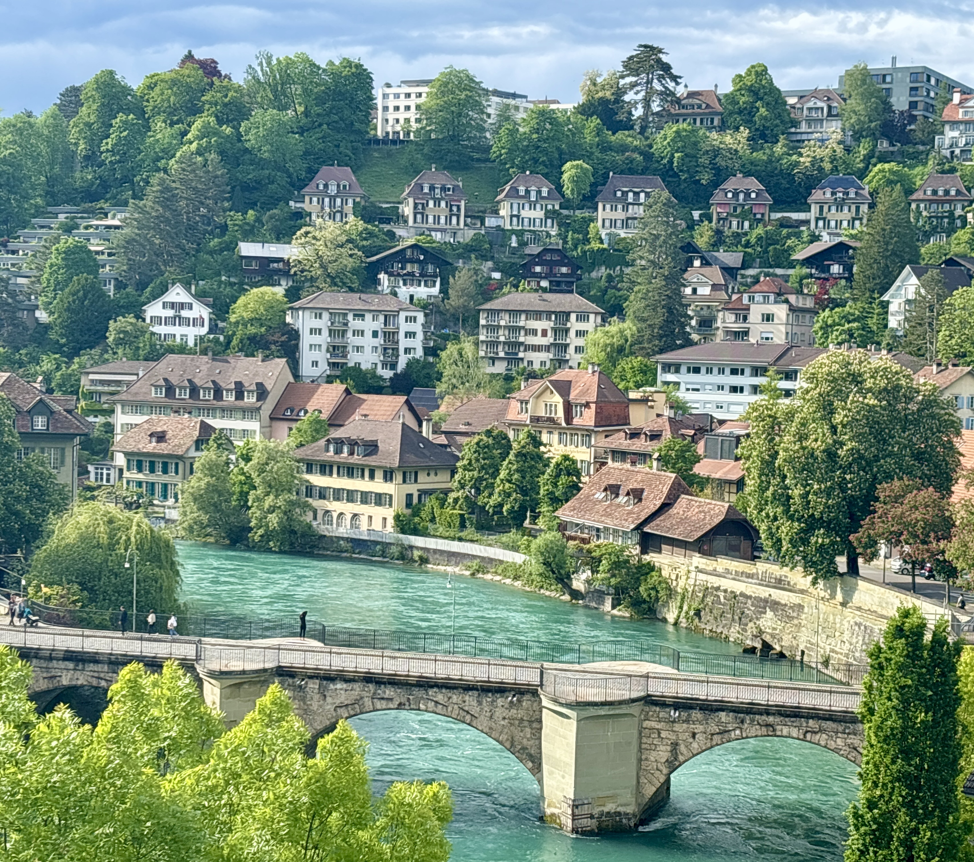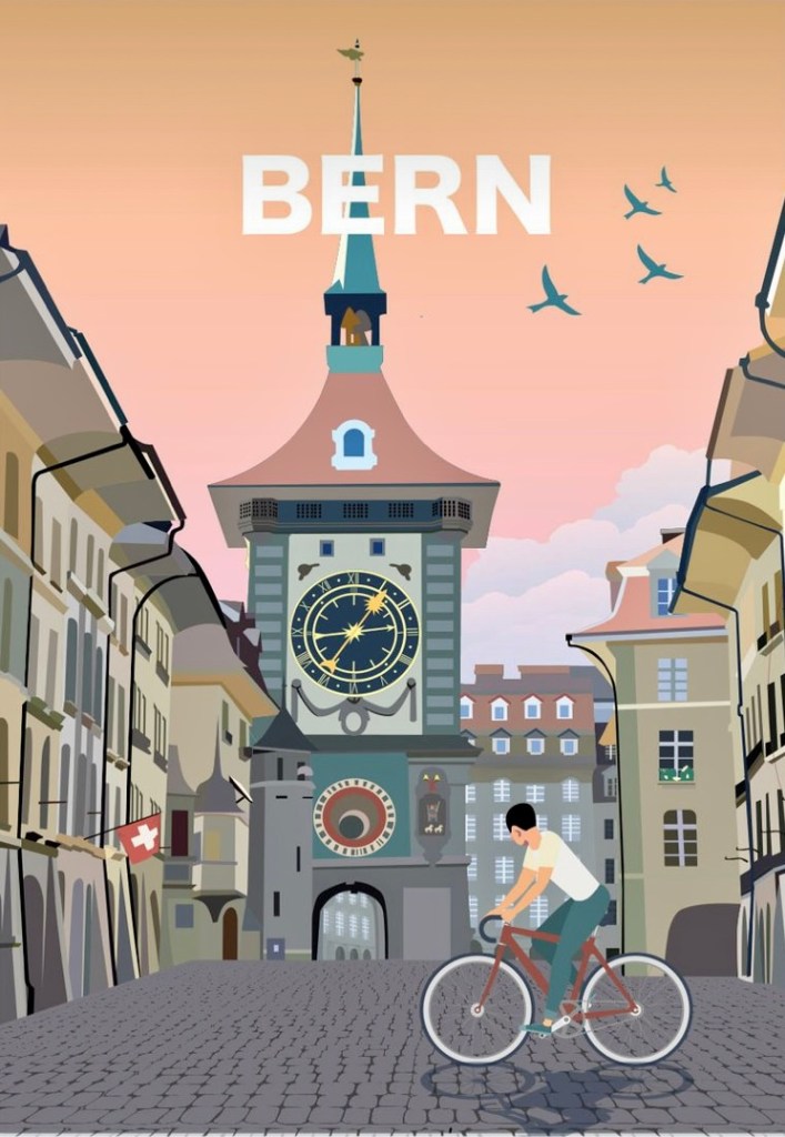 Samedi, le paysage défile, morne et triste. Le contrôleur – un humoriste ?- annonce que le train change de destination -une première- Finalement la gare de Bâle vaut bien celle de Zurich. À distance, sur son clavier azerty Didier nous a déniché une correspondance tardive, avec vélo -celui qui reste- avec billets et pot d’accueil pour Bern. Un heureux présage. Didier et Annette nous ouvrent leur maison située dans un paisible quartier de la capitale Helvétique. Dimanche, visite guidée de la ville. On oublie un peu le vélo volé et le retour annoncé vers Annecy. La ville est luxuriante, tranquille au bord de l’Aar, aérée et paisible avec ses trams vintage inaugurés en 1909. Merci à Didier pour son amicale, précieuse et chaleureuse compagnie. Lundi, Patrick un autre copain prend la relève à la gare de Genéve. Dans la voiture qui nous ramène à Annecy les bavardages vont bon train, puis soudain, nous sommes de retour à Annecy. On ne va pas s’y faire.